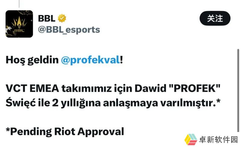 BBL Esports官方宣布与波兰选手PROFEK达成两年协议,合同尚待Riot审批。