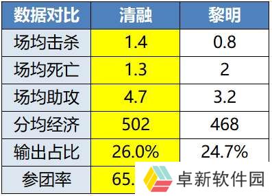 清融在本次年总的整体表现还是不错的,场均击杀能排到中路第四,两大招牌西施、不知火舞都是3战2胜的高胜率。再加上有场均死亡2.5次中路第一的替补小晗衬托,显得更加无法替代。在上一场终结佛山DRG连胜的比赛里,清融和花海两人都打出了相当恐怖的表现,在绝意4局比赛迷了两把的情况下强行carry。看看今晚是否能延续这种好状态吧。