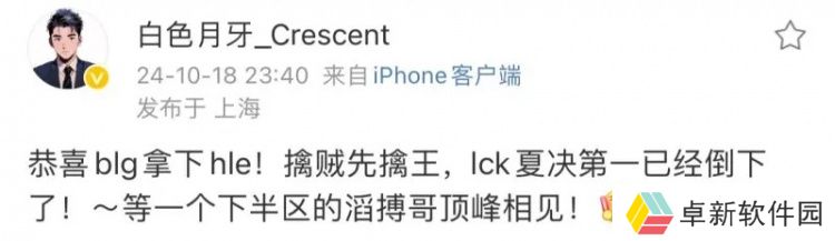 赛后,白色月牙发文:恭喜blg拿下hle!擒贼先擒王,lck夏决第一已经倒下了!~等一个下半区的滔搏哥顶峰相见!