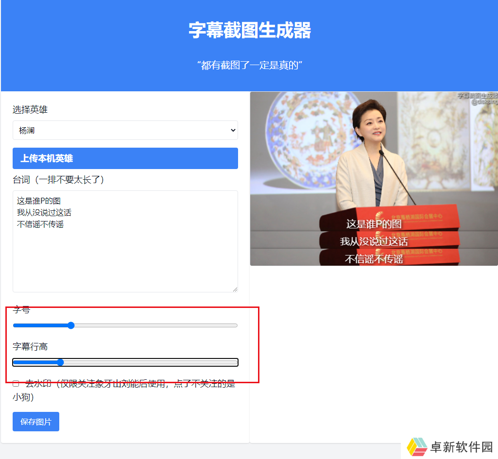 在网页上就可以自己制作这样的截图,可以选择人物,自己输入台词,调整字号和字幕距离,更可以去掉水印。