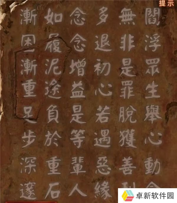 9、剧情后把石片放在左上角的石碑上,开始玩记忆小游戏了,这里给推荐一种作弊方法,拿上上面那张图,发送给自己的qq号,然后使用另一个手机登录qq接收图片,打开随便一个编辑软件,点击开始后跳那个字就在那个字上面写顺序~完成之后石碑裂开,进入就可以找到女主了。
