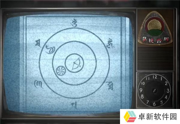 12、全部进对后就能离开这个空间回到沙漠了,再次进入佛像下面的监控室,查看一下商标红笔标注是>3^4,那么是不是可以理解为向右3格,向上4格呢,既然是向右向上,那么起始点肯定是从左下角了,从左下角的显示器向右3格向上4格后找到的是第一排的第3个,查看一下这个电视使用商标后果然出现图案。