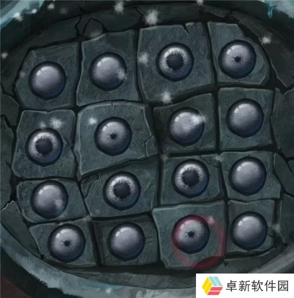 21、小高能过后电视上的眼睛是有两种形态的,大瞳孔和小瞳孔,眼睛位置也是会变化的,这里就把两张图合在一起吧,大概就是第一行3大4小,第二行1大2小,第三行2大3大,第四行1小3小,记好后就可以后退一下来到冰雪世界,查看右边墙上的机关开始调整了。