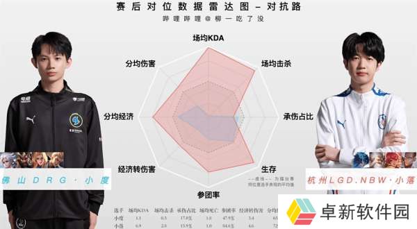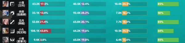 反观对面梦岚,自家中单前期这样帮,最后打了个14.1%全队倒数第一的输出占比。