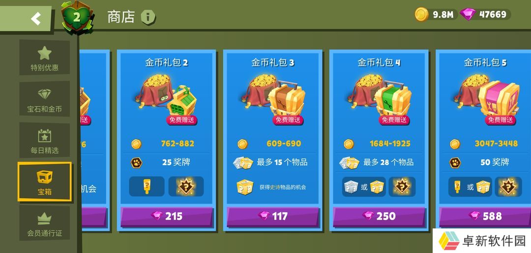 战斗结束获得宝箱,有机会解锁新动物;完成任务得碎片合成角色;商城限时售卖新角色。