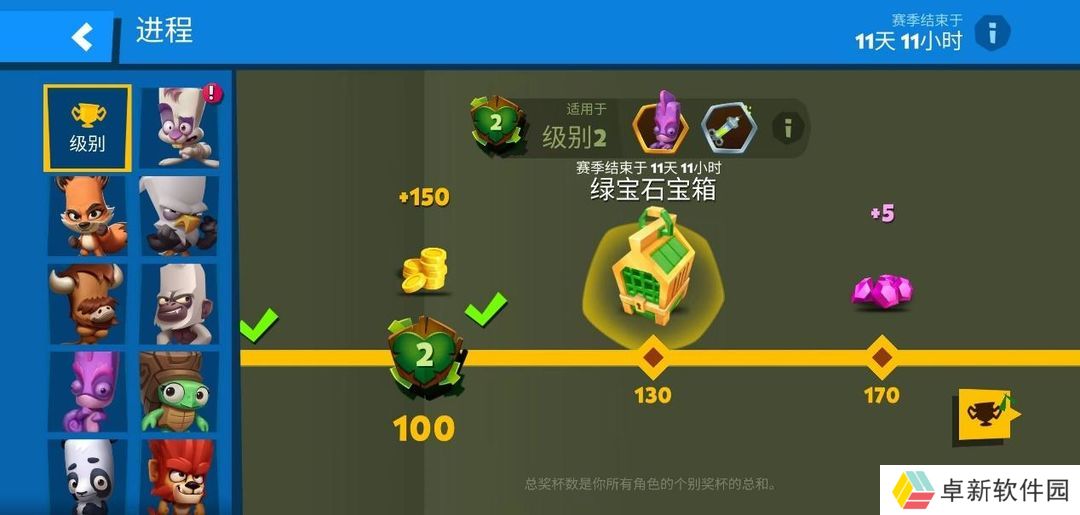 通行证等级决定可解锁动物,通过战斗累积杯数提升等级。