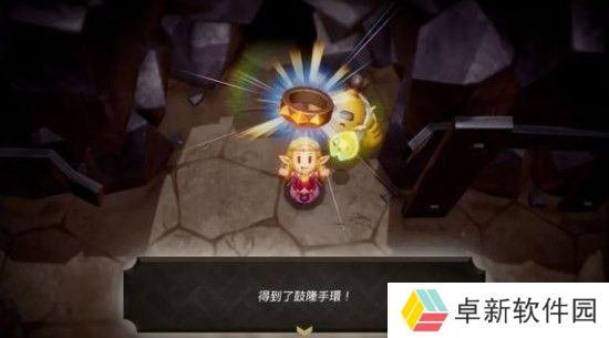 《塞尔达传说 智慧的再现》是塞尔达传说ip下的一部新作品,该作品以公主塞尔达为主角。鼓隆手环是游戏中的一种饰品,这个饰品的效果是搬运时移动速度提升。