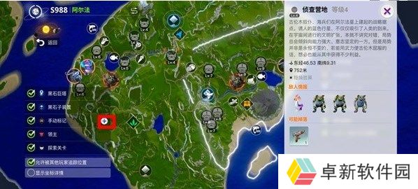2、之后来到黑石巨塔底下点击产生共鸣,之后即可解锁地图,并显示出黑石遗迹位置。