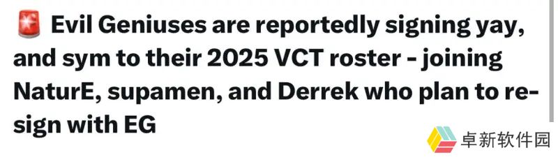 据外媒爆料,Evil Geniuses接近签下前BLEED战队的顶级选手yay以及前TSM选手sym,准备加入其2025 VCT赛季阵容。