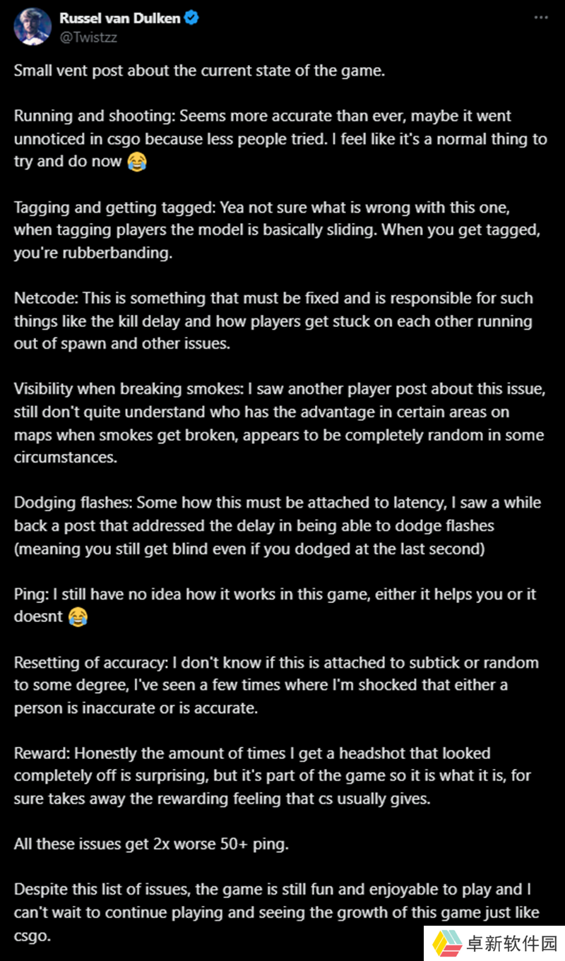 Liquid战队指挥Twistzz在社交平台上发布动态,分享了他对于当前游戏状态的不满。Twistzz也将自己的分享表述为“关于游戏现状的小小吐槽发泄”。
