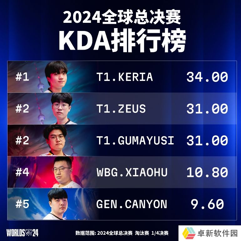 S14淘汰赛KDA排行榜:Keria以34逆天KDA居首