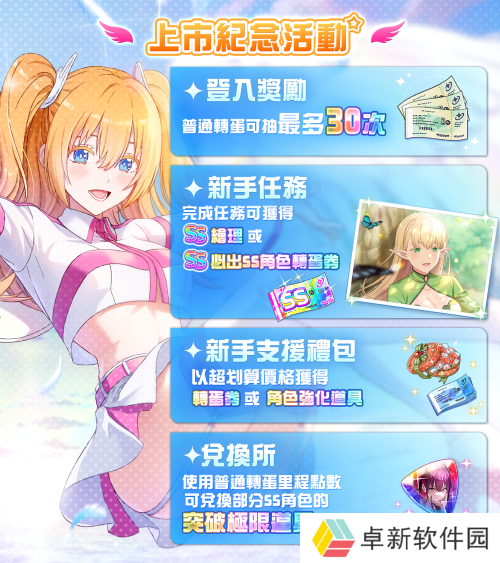 开服庆典火爆来袭!9月3日起,每日登录即赠转蛋券,累计可达30张。完成初心者任务,宝石、转蛋券及珍稀角色“眼中只有你”艾露芬绘理、SS角色必出券等你拿!新手礼包限时72小时专享。