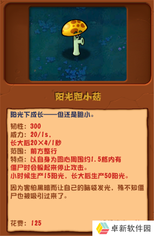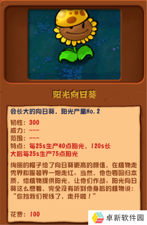 评价:成长型植物中的佼佼者,配合阳光豆,25秒内产出125点阳光。前10关仅需5棵,阳光无忧。