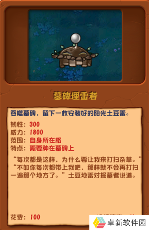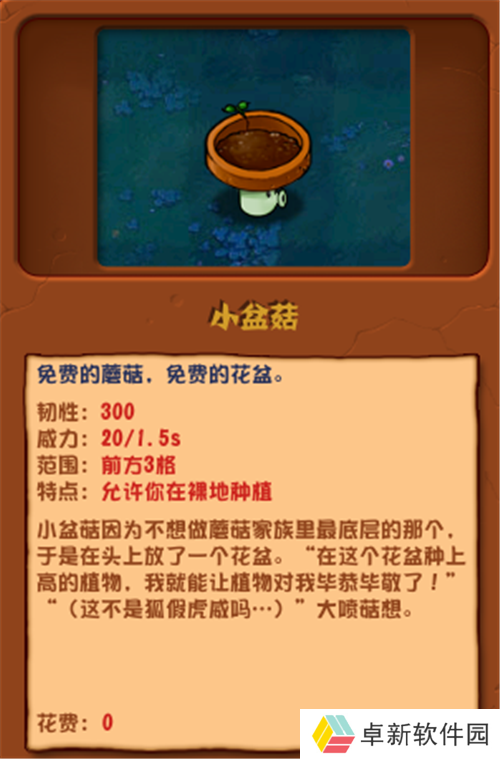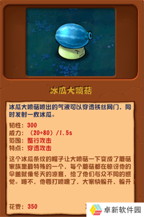 评价:第八关奖励植物,冷却快且返还阳光。前期保护单路,阳光充足后可替换为攻击植物。