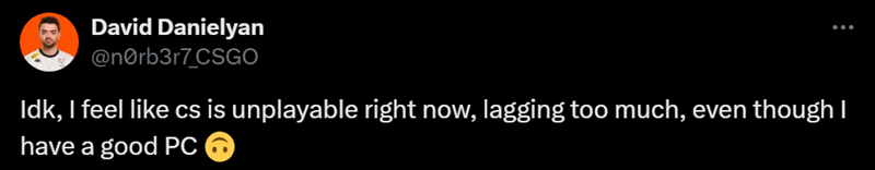 “我不知道,但我感觉现在的CS没法玩。因为游戏的延迟太高了,尽管我的电脑配置不错,但依旧如此。”