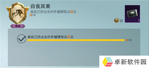被自己手榴弹淘汰50次。单排选物资丰富地图找手榴弹。双排可结合“网络不好”成就,在“利维科”与好友配合完成。