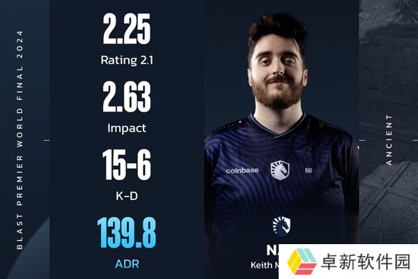G2战队的比赛中,NAF在图一Ancient上发挥出色。他一共拿到了15个人头,打出了139.8的ADR和2.25的rating。考虑到这是rating 2.1下的数据,如果是之前的rating 2.0,NAF的数据还会进一步上升。