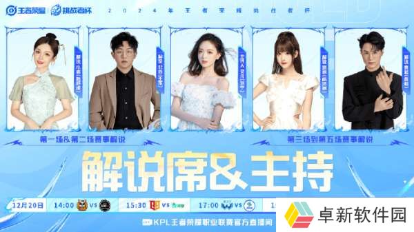 解说席&主持人:解说小鹿 (陆舒媛)、北岛bbb (王东)、灵儿chili (刘宁)、解说琪琪 (杨泽琪)、GK黄色超人oye (黄超)