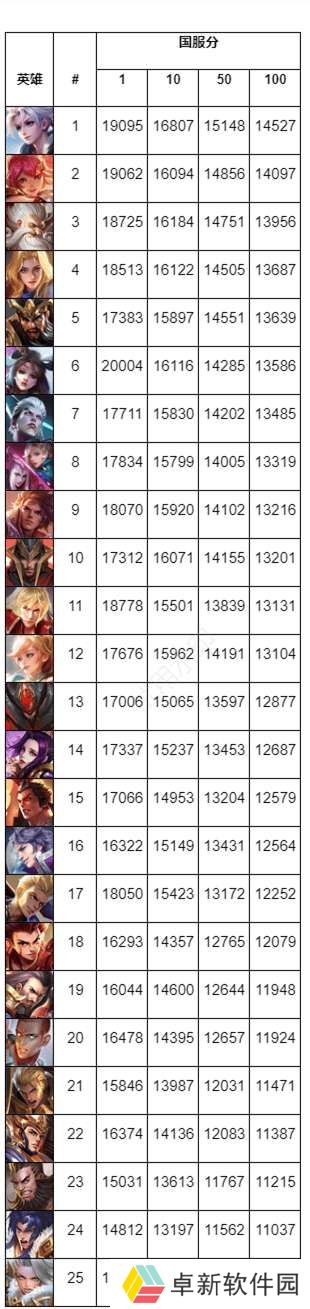 英雄战力取QV双区平均战力,以国服前百降序排列,所以哪个英雄的小国标好拿,一目了然,看看你是否达到了该英雄的平均分数吧。