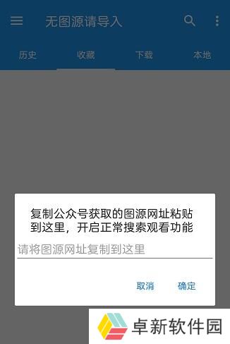 2、进入软件页面之后会弹出一个窗口,窗口需要输入对应的图源地址才可以正常搜索使用。