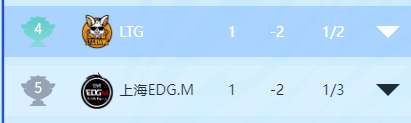 LTG在本周终于是拿到了自己的挑杯首胜,2-0战胜并淘汰了主播赛道的佳美娜。凭借着这场胜利,LTG以1胜2负-2净胜分的成绩反超了KPL内战全败的上海EDG.M,目前暂列2组第四。收官战他们将要挑战小组第一的成都AG超玩会,自然是胜算渺茫,可以说今天就是他们放手一搏的生死战了。