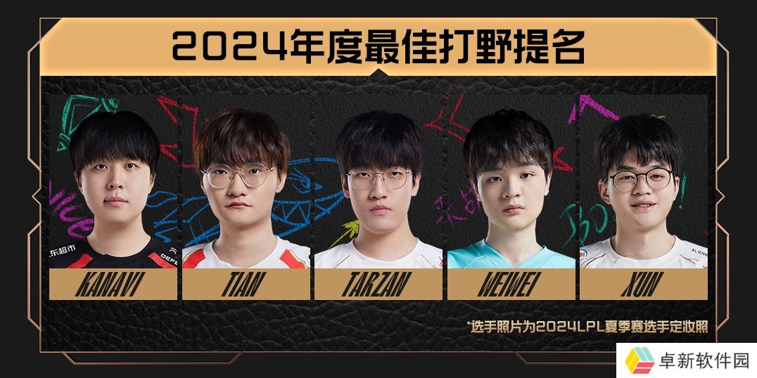 年度最佳打野提名公布:Kanavi / Tian / Tarzan / Weiwei / Xun