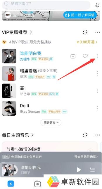 1、打开酷狗音乐软件,找到喜欢的歌曲,点击右边三个点。