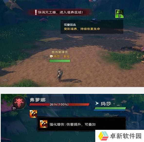 DPS注意转火击杀工蜂即可,同时请注意,需要在其采集完花蜜后,返回首领身边时再将其击杀才可以获得增益,增益用于对抗后续的“养分吸收”技能。