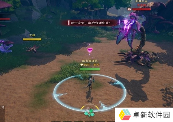 1、首领会对目标玩家释放[死亡之吻]造成高额伤害,需要集合进行分摊伤害。