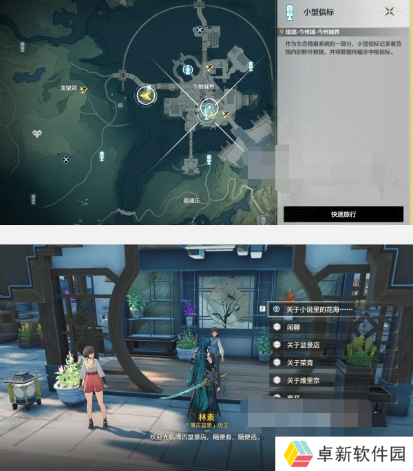 3、传送到今州城界地图下方信标,与盆景店主林素对话。