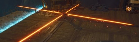 该机关会发出十字形的光束,并在原地持续旋转,碰到光東的玩家会受到大量伤害。