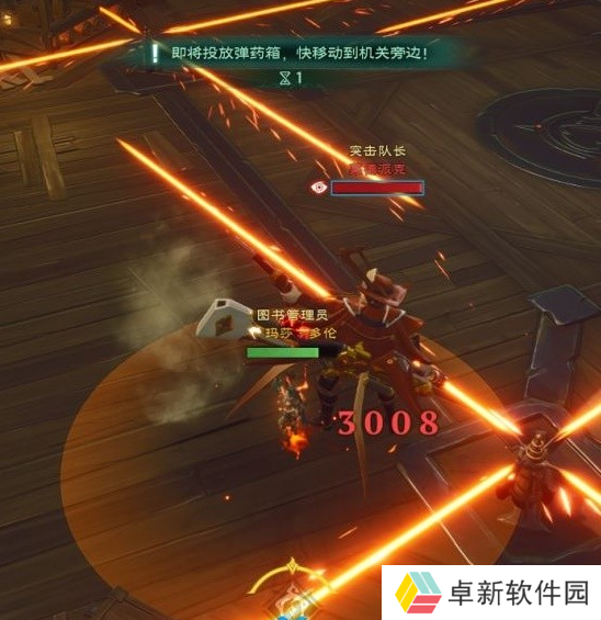 首领使用手中的武器,对全场玩家倾泻火力,并对自身周围一定范围内的玩家造成更多伤害,持续6秒。