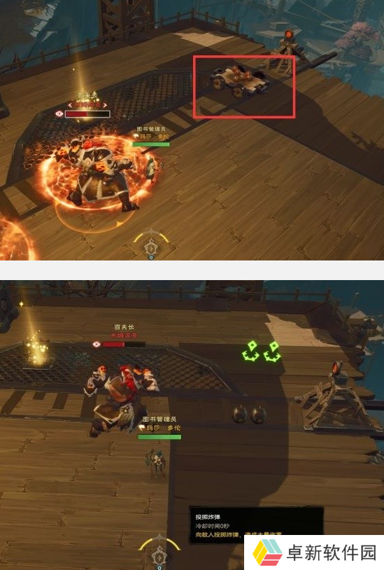 3、反之,炸弹车驶来时,不要扳动扳手,炸弹车驶向轨道的尽头后会掉率炸弹,拾取炸弹伤害首领。
