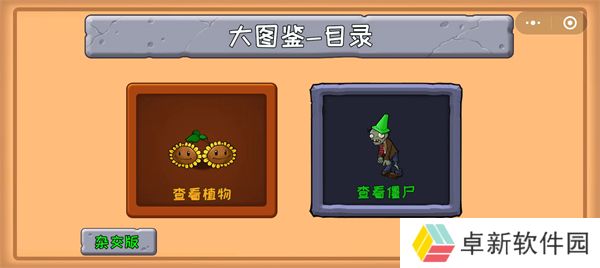 4、点击左下角“图鉴”玩家可以查看植物图鉴、僵尸图鉴,了解不同植物和僵尸的效果、威力等特性;