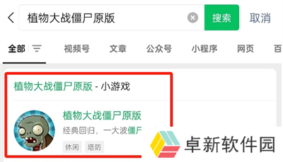 1、打开手机微信搜索“植物大战僵尸原版”,选择小游戏进入游戏;