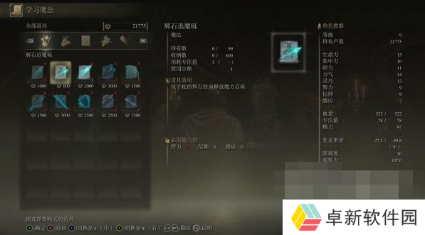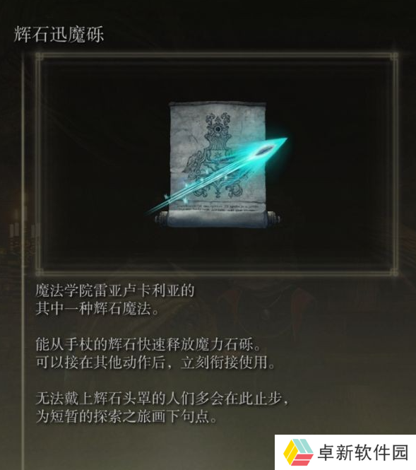 艾尔登法环游戏中有很多魔法,其中“辉石迅魔砾”是很多玩家喜欢的魔法,这个魔法消耗的法力比较少,而且射速快,那么具体怎么获得,可以参考小编接下来给大家带来的详细介绍。