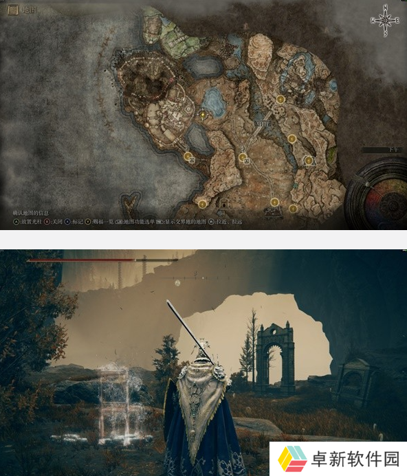 2、到达之后可以看到右下角牌坊和中心巨大石桥,石桥只有正门和艾拉克大桥旁有,大桥旁景物不符;