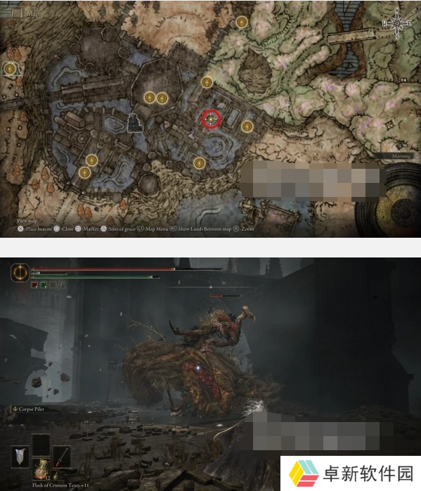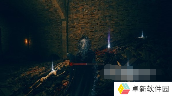 在地窖中有一个双持棍棒的体型很大的敌人,在下图所示位置可以拾取到黑暗覆眼膜。