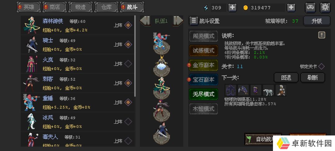 ③、闯关和无尽关卡,右侧有一个小按钮“锁定关卡”,点击后不会自动推关,会一直在当层刷资源。