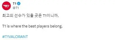 T1还用了一句话介绍新阵容:最强的选手所在之处就是T1。