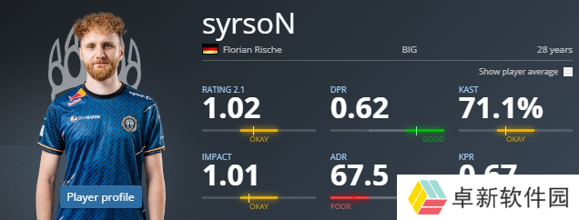 这位28岁的选手曾在2020年1月至2023年8月期间效力于BIG战队,在他第二次为BIG效力期间,其线下赛事平均rating为1.02。