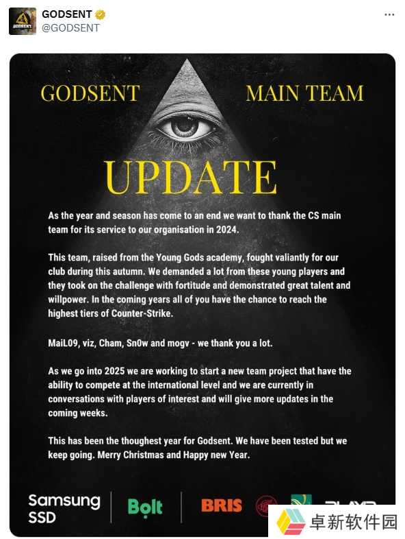 GODSENT俱乐部在官方社媒发表动态,将解散旗下CS阵容。与此同时,该俱乐部也表示他们会与潜在的选手进行沟通,会在2025赛季适当时候回归组建新项目。