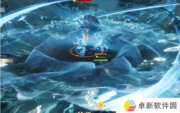 该技能具有明显的范围区域,中心点还有一个小型漩涡。若不小心进入该区域,玩家将受到大量伤害和持续减速效果,同时漩涡会不断将玩家吸向中心。