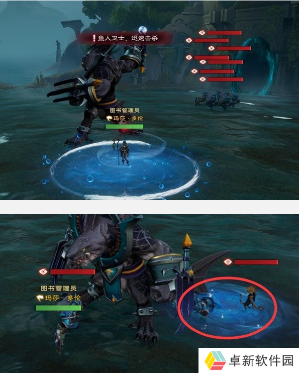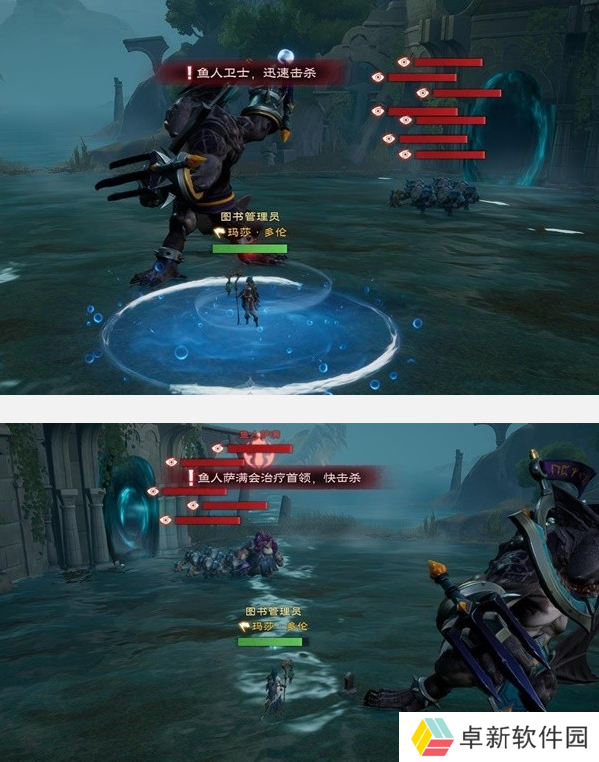 ③精英和史诗难度下,优先击杀鱼人萨满(胖子怪),击杀后出现避风港(巨大水罩),全员进入来抵御BOSS的高额群伤。