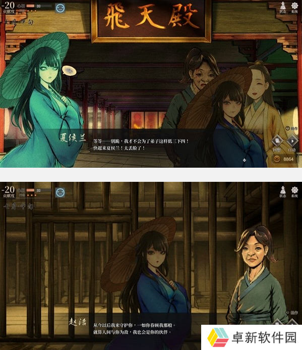 5、夏侯兰的关键节点剧情就到这里,夏侯兰刷好感的地方蛮好刷的,反正就是去她那里修炼,好感度嘎嘎上,还加一系列武学能力。