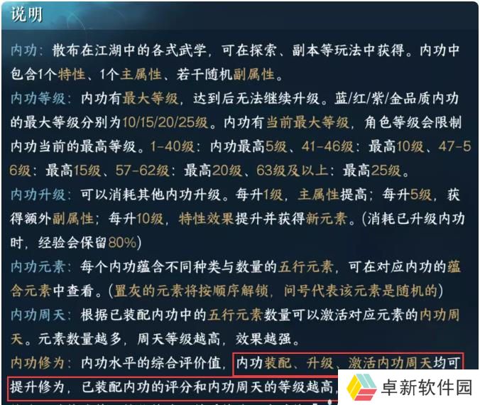 前期由于金色内功稀缺,低肝度玩家可能很难凑出本职业适合的周天/内功搭配方案。