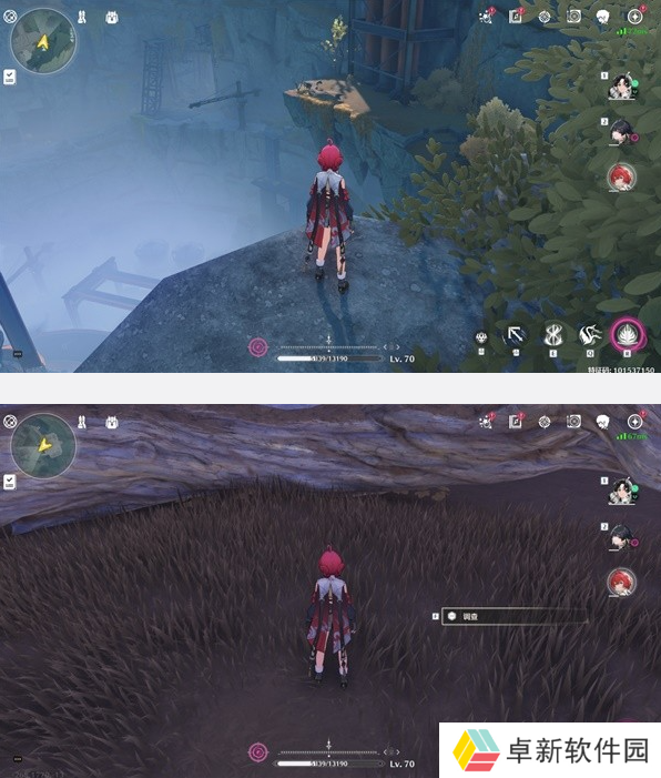 从上图的铁罐开始,向上爬两层,也就是上图的最高处,可以看到一堆乱石,调查点在乱石中间(我捡过了所以不显示)。